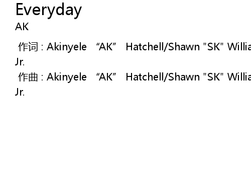 | [00:00.000] | 作词 : Akinyele “AK” Hatchell/Shawn "SK" Williams/H. Frierson Jr. |