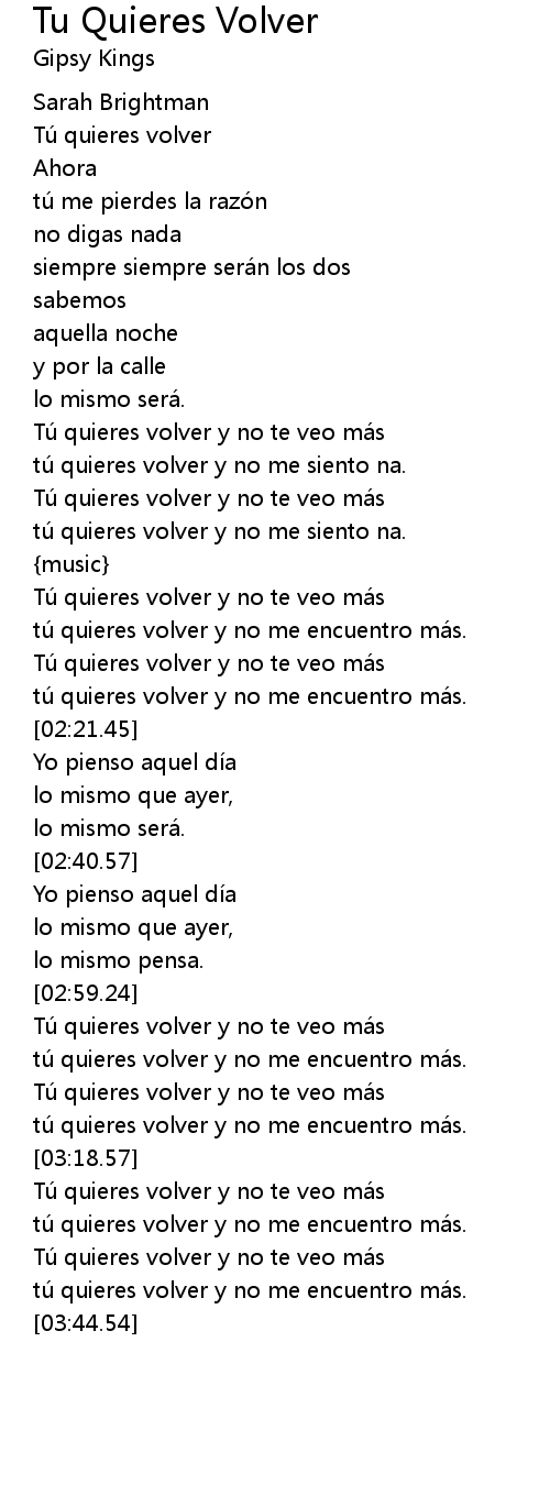 | [02:59.64] | Tu quieres volver y no te veo ma s |