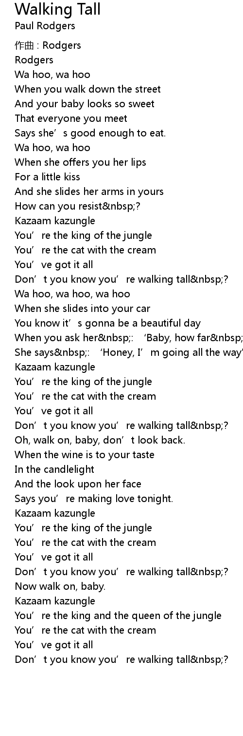 | Don' t you know you' re walking tall nbsp? | |