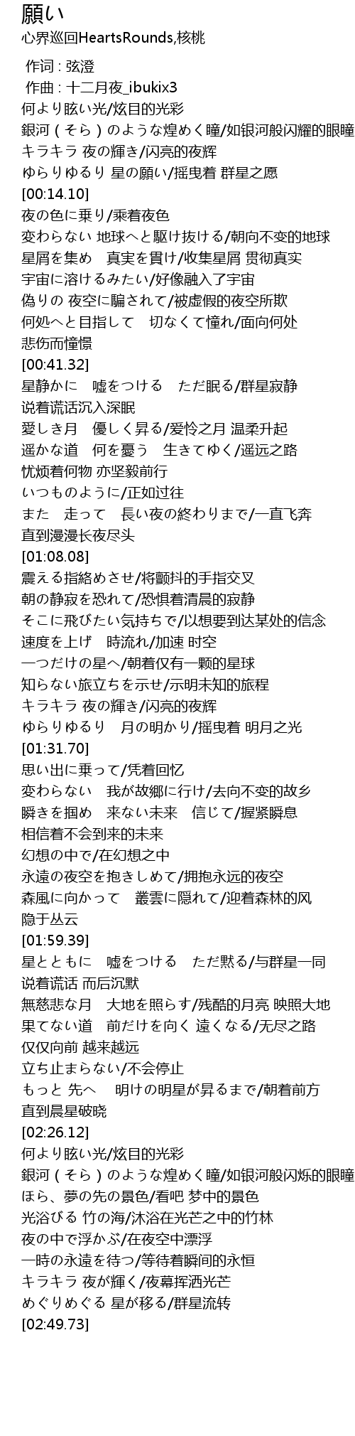 | [00:10.83] | ゆらりゆるり 星の願い/摇曳着 群星之愿 |