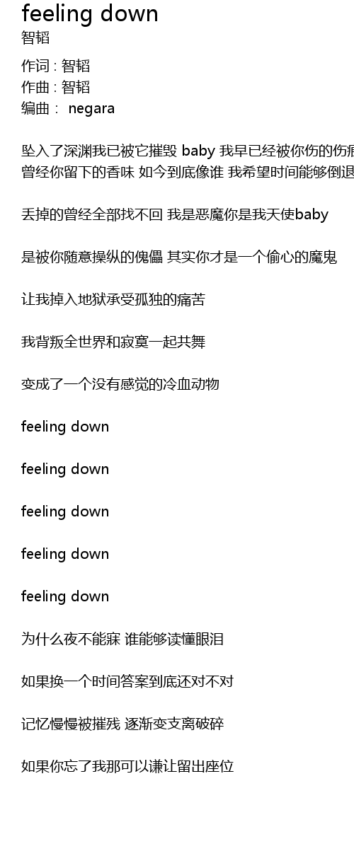 | 歌曲 | feeling down |