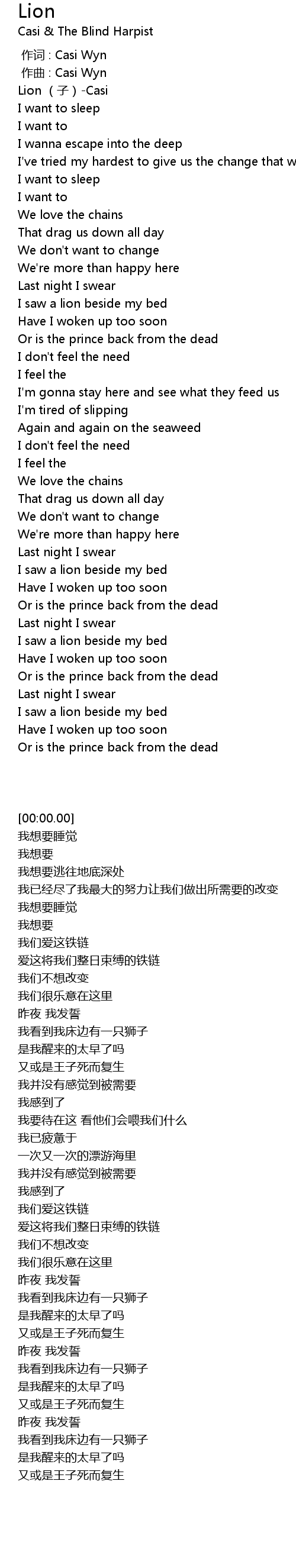 | [00:00.00] | Lion (子)-Casi |