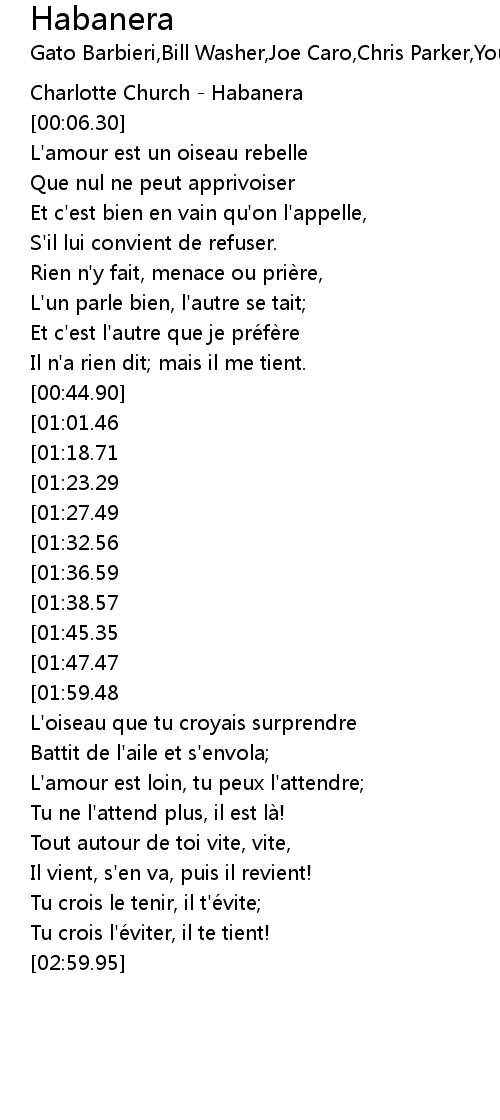 | [00:08.30] | L' amour est un oiseau rebelle |