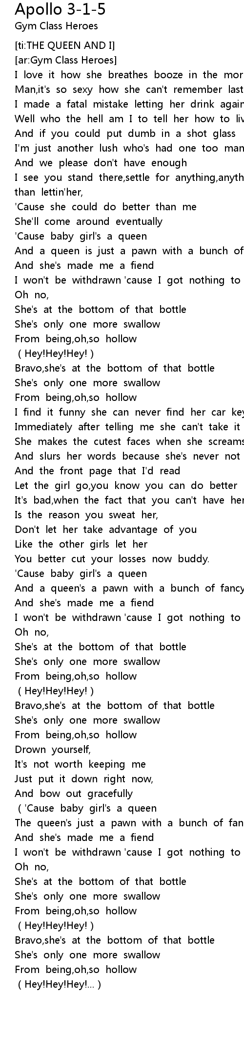 | [02:23.775] | ' Cause baby girl' s a queen |