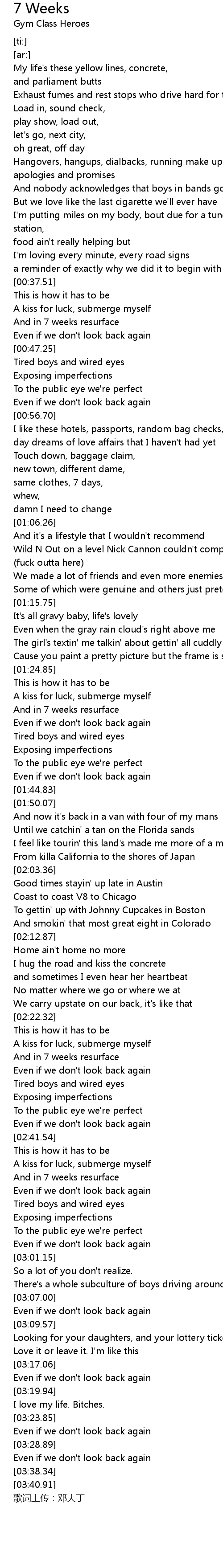 | [03:43.52] | 歌词上传:邓大丁 |