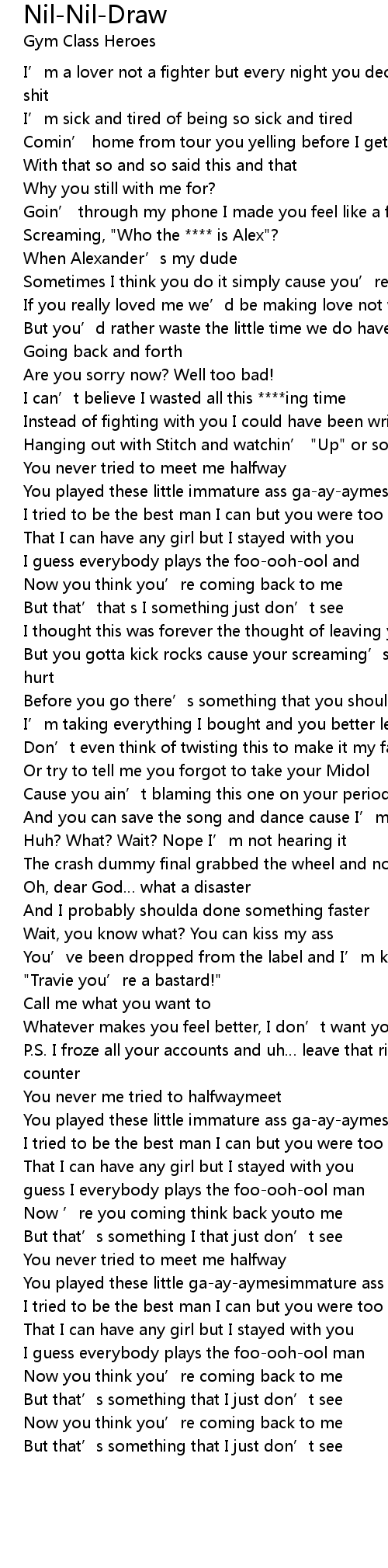 | 歌曲 | Nil-Nil-Draw |
