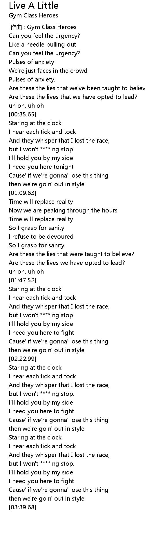 | [00:00.00] | 作曲 : Gym Class Heroes |