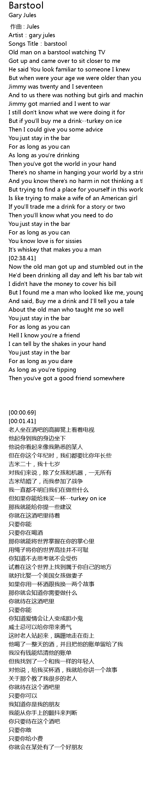 | [03:06.54] | He'd been drinking all day and left his bar tab with me |