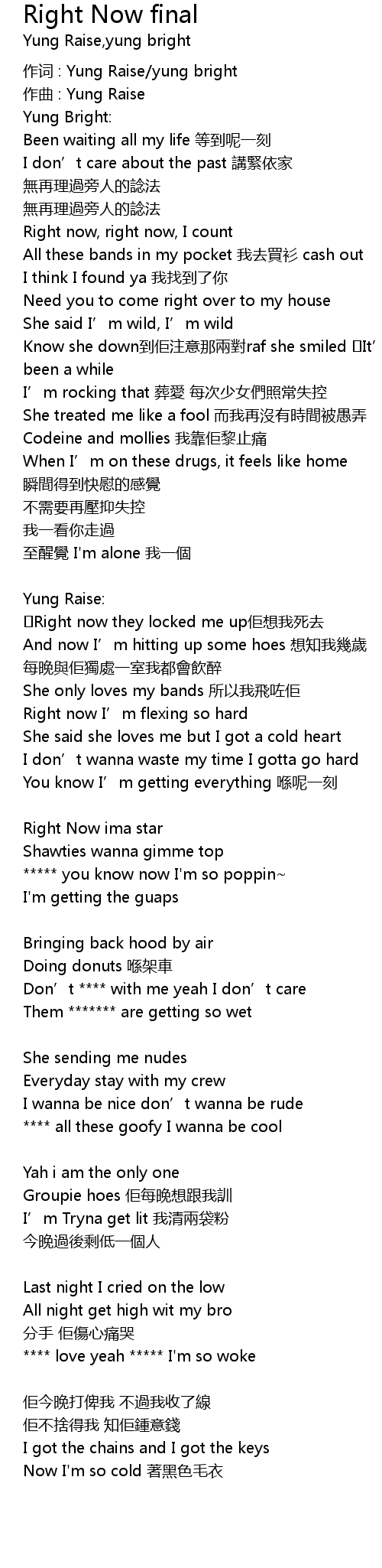 | 作词 : Yung Raise/yung bright | |