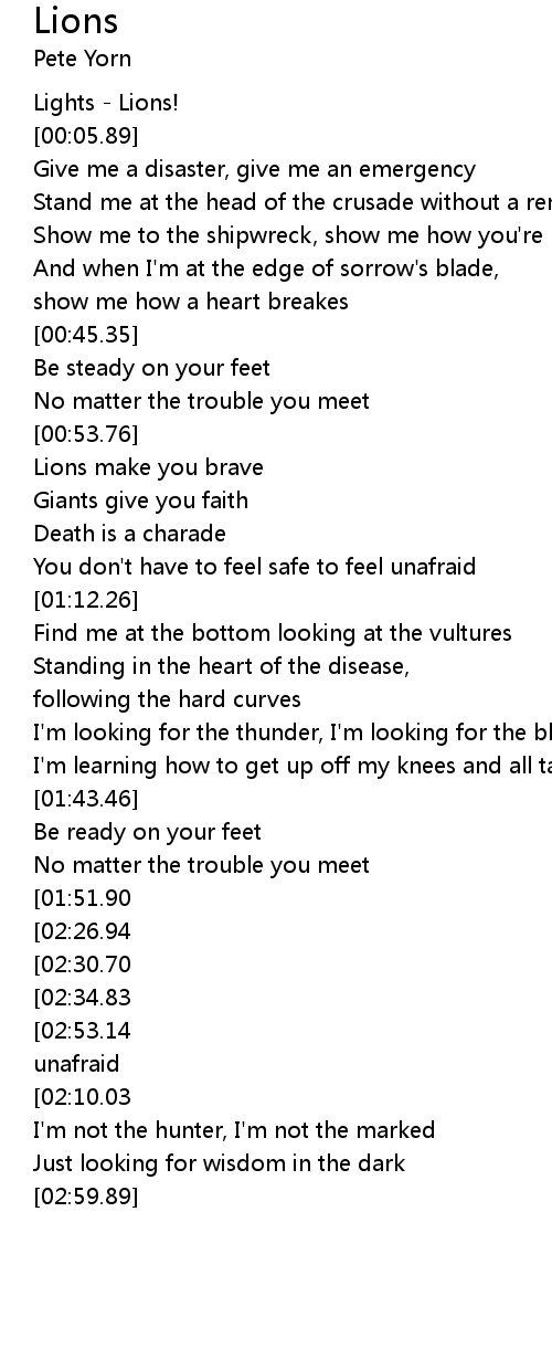 | [00:01.12] | Lights - Lions! |