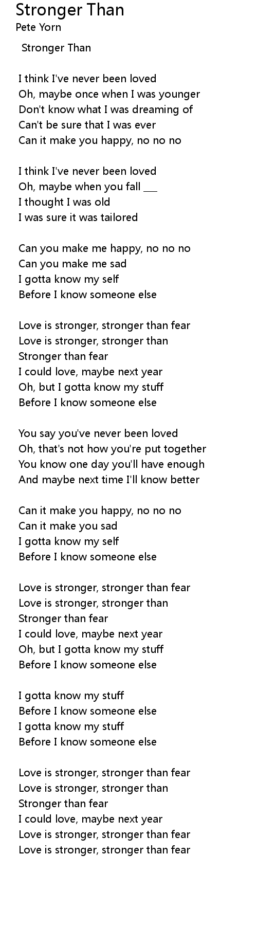 | Love is stronger, stronger than | |
