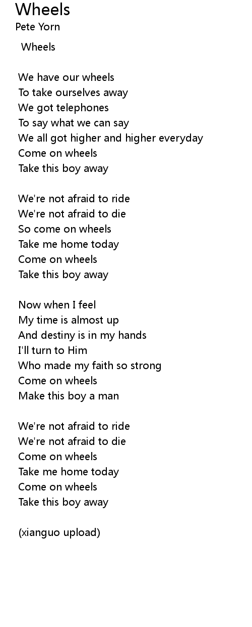 | So come on wheels | |