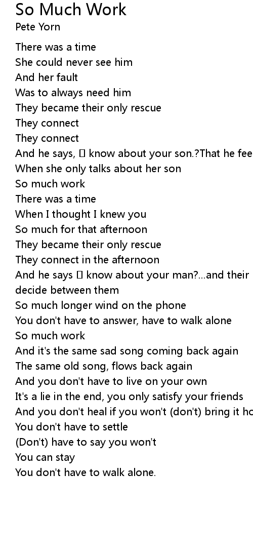 | 歌曲 | So Much Work |