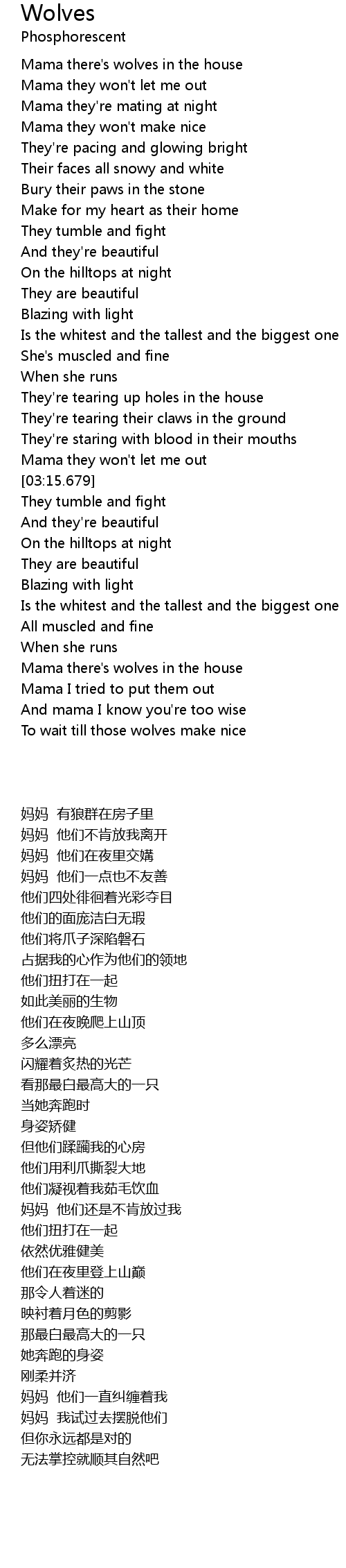 Mama there's wolves in the house |