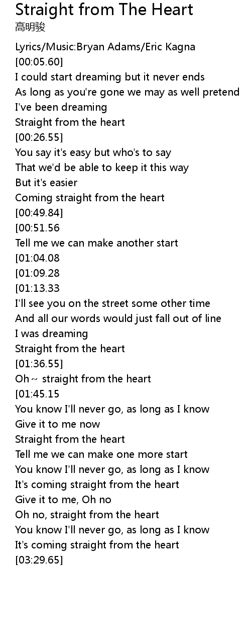 | [01:33.34] | Straight from the heart |