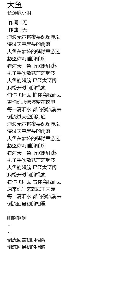 | [02:45.742] | 大鱼的翅膀 已经太辽阔 |