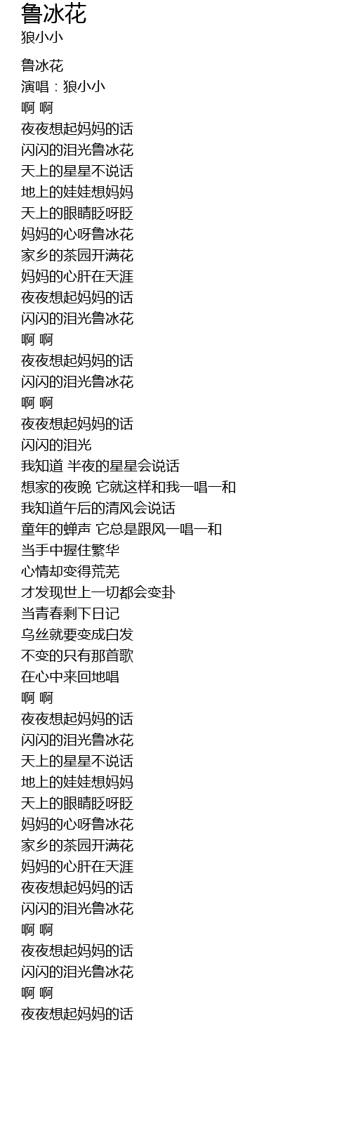| [00:31.758] | 妈妈的心呀鲁冰花 |