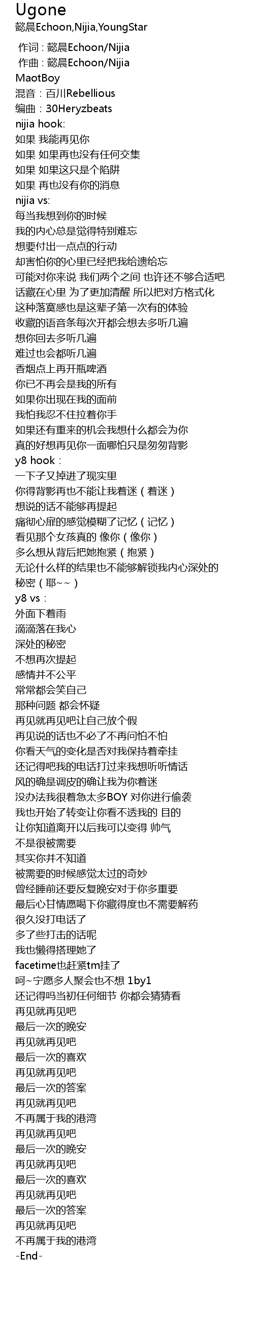 | [00:00.000] | 作词 : 懿晨Echoon/Nijia |