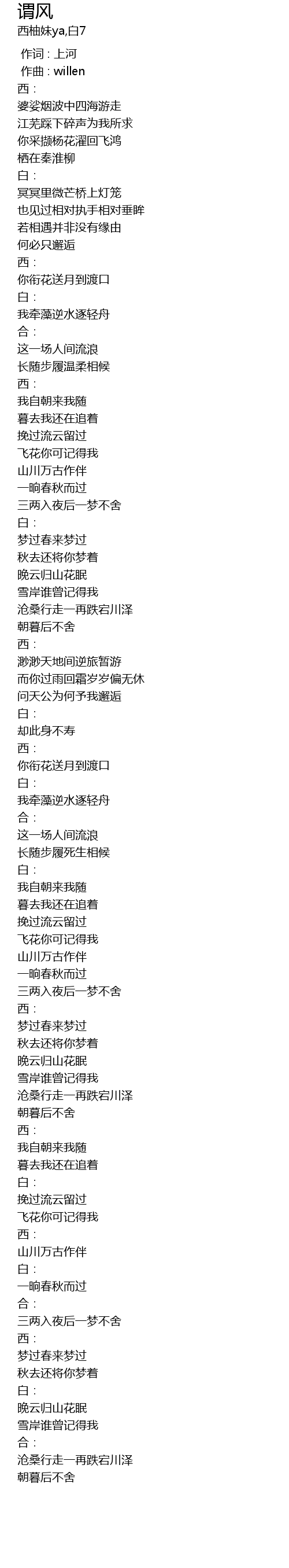 | [00:00.000] | 作词 : 上河 |