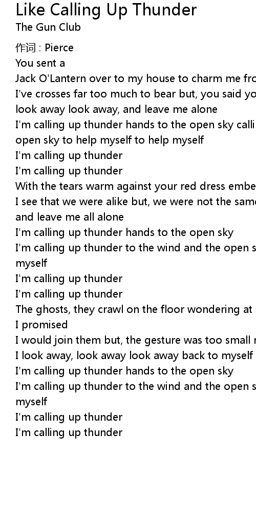 | 歌曲 | Like Calling Up Thunder |