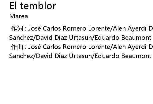 | [00:00.000] | 作曲 : José Carlos Romero Lorente/Alen Ayerdi Duque/Cesar Ramallo Sanchez/David Diaz Urtasun/Eduardo Beaumont Ezkurra |