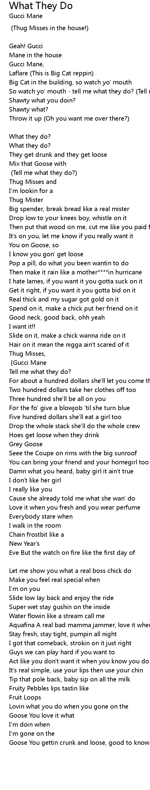 Tell me what they do? (Tell me what they do?) [Chorus: repeat 2X] |