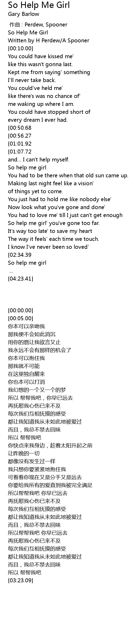 | [02:38.03][00:50.68] | So help me girl' you' ve gone too far. |