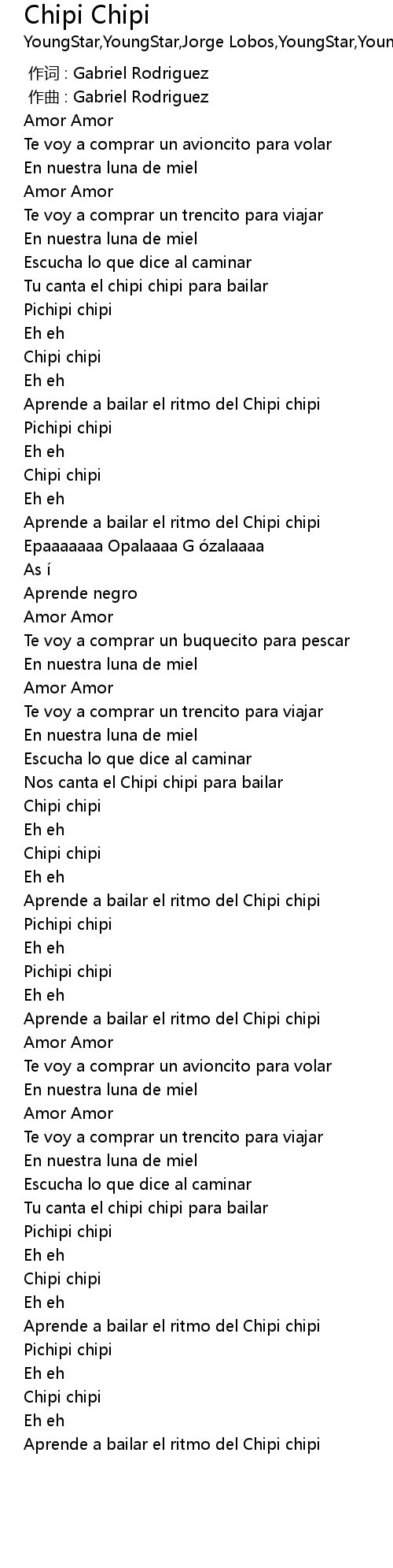 | [00:46.764] | Tu canta el chipi chipi para bailar |