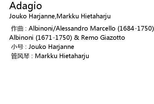 | [00:00.000] | zuo qu : Albinoni Alessandro Marcello 16841750 Marcello Tomaso Albinoni 16711750 Remo Giazotto |