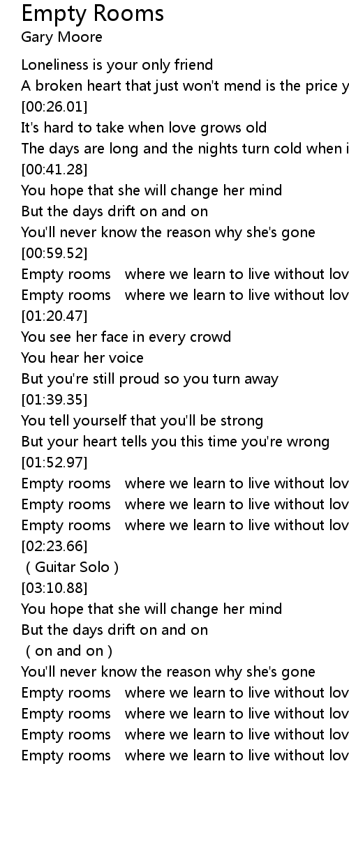 | [03:38.95] | Empty rooms where we learn to live without love |