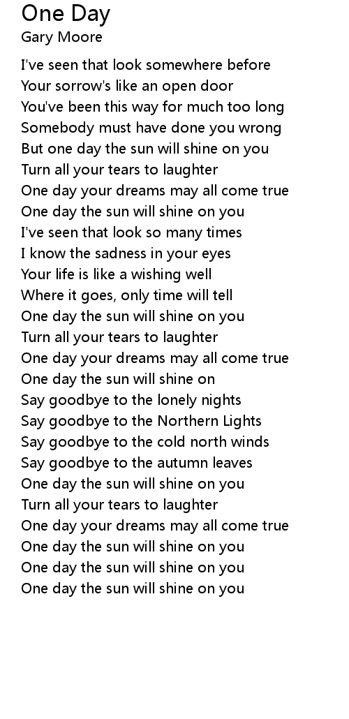 One day the sun will shine on you |