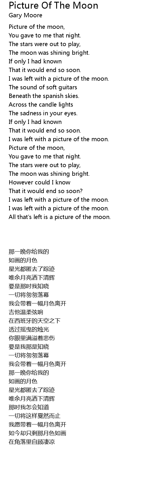 | 歌曲 | Picture Of The Moon |