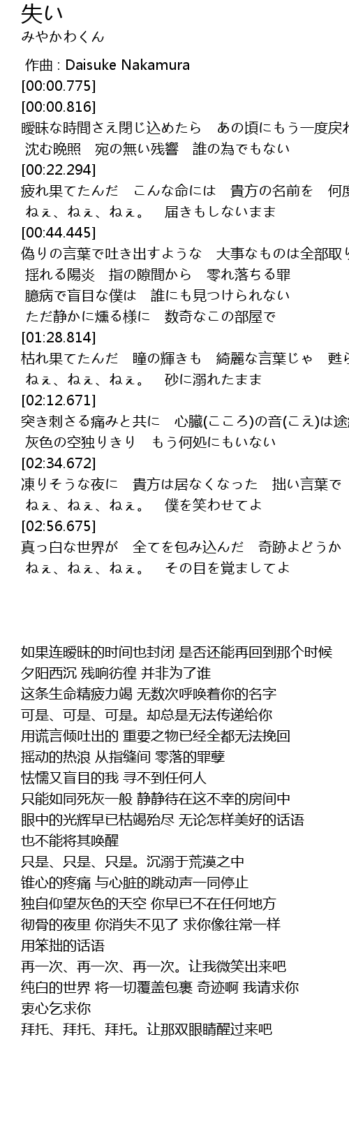 | [00:00.000] | zuò qǔ : Daisuke Nakamura |