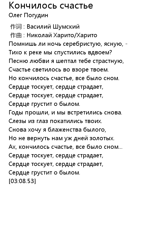 Кончилось счастье 歌词