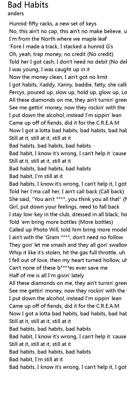 Bad habits, I know it's wrong, I can't help it, I got bad habits |
