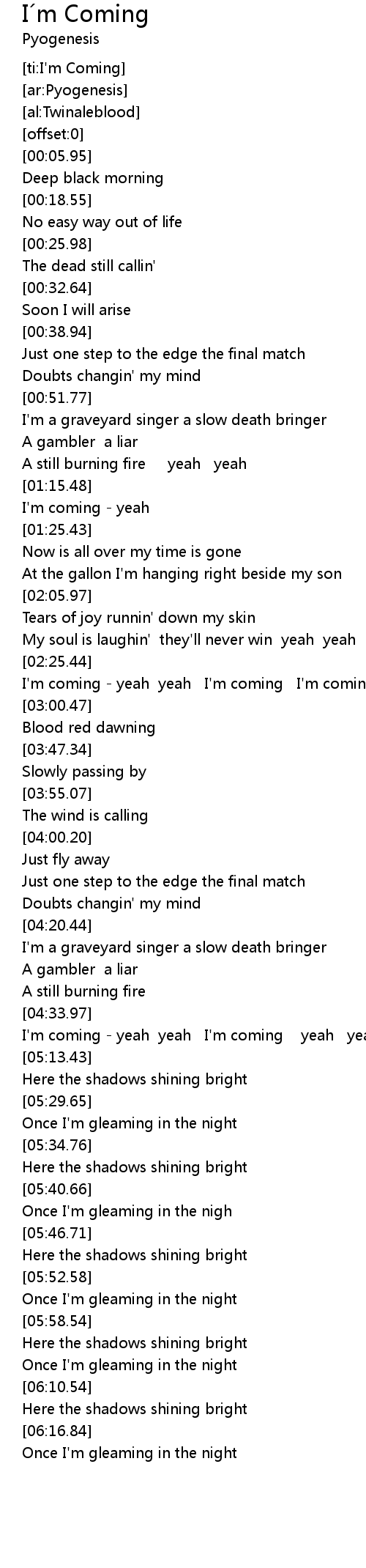 I'm coming - yeah yeah I'm coming yeah yeah I'm coming |