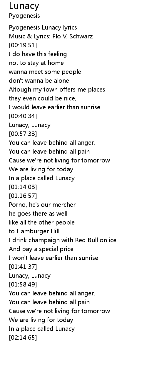 Pyogenesis Lunacy lyrics |