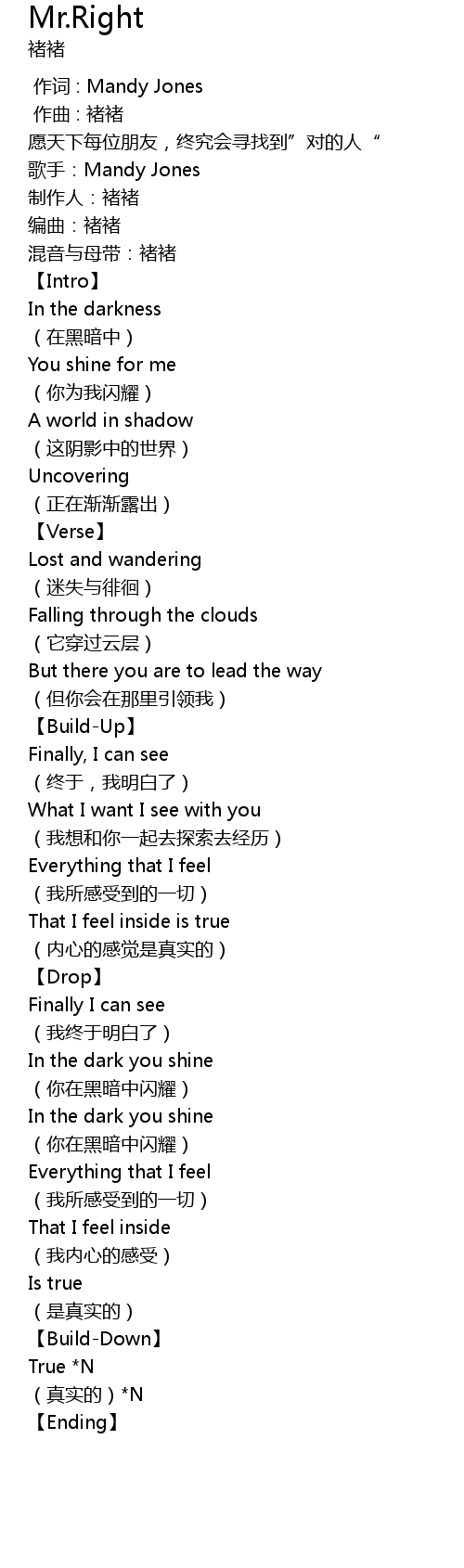 | [00:00.413] | gē shǒu: Mandy Jones |
