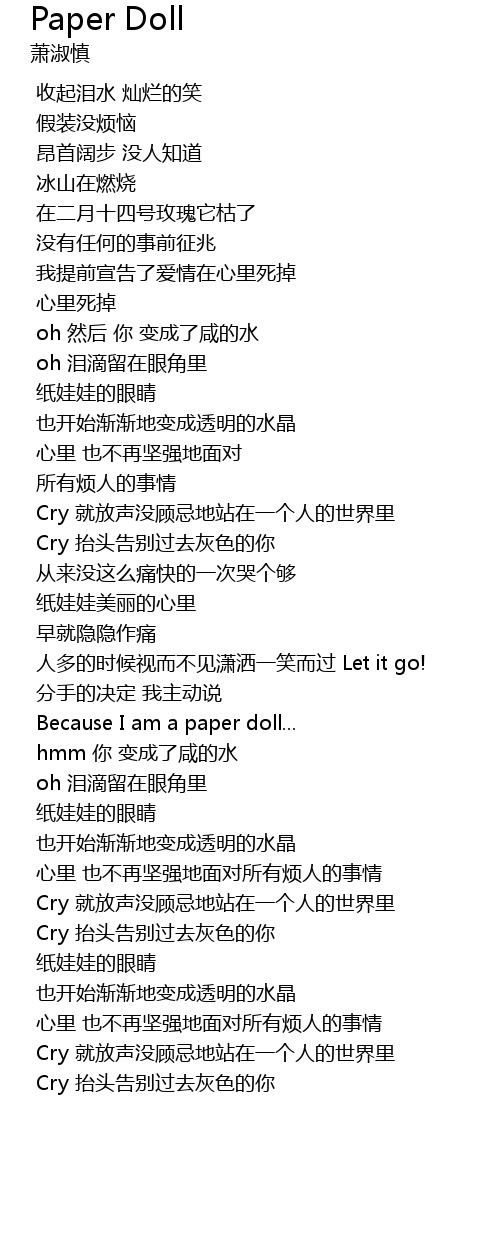 | [02:34.56] | Because I am a paper doll... |