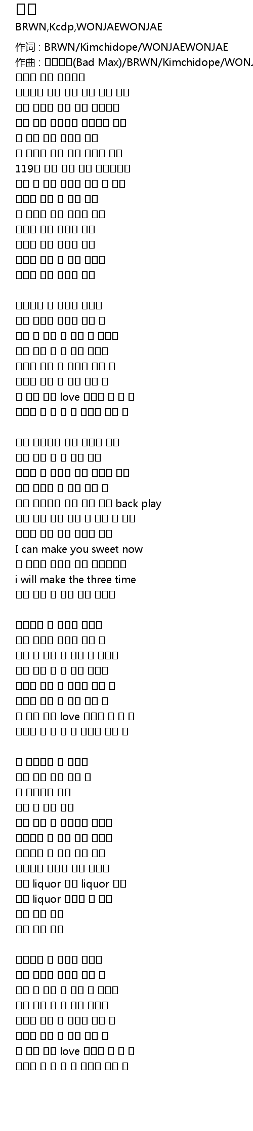 作词 : BRWN/Kimchidope/WONJAEWONJAE |
