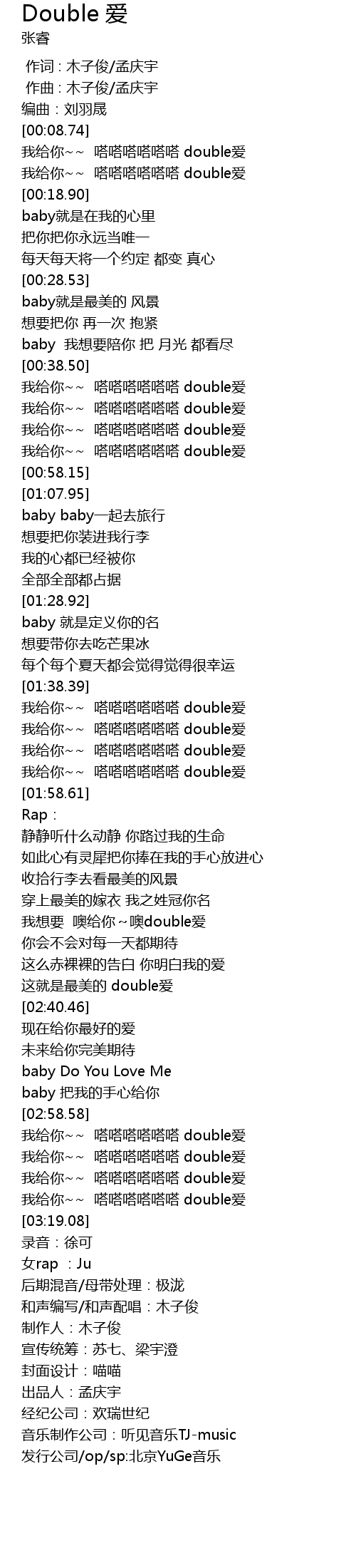 | [02:59.91] | 我给你~~ 嗒嗒嗒嗒嗒嗒 double爱 |