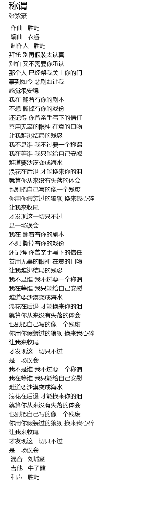 称谓 歌词