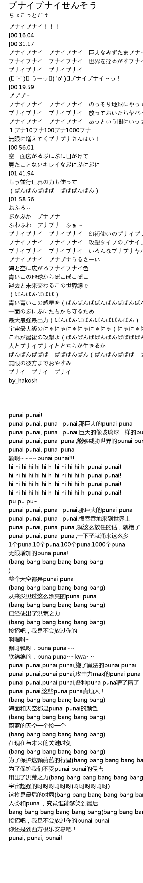 | [00:08.99] | punai punai, punai punai,能够威胁世界的punai punai |