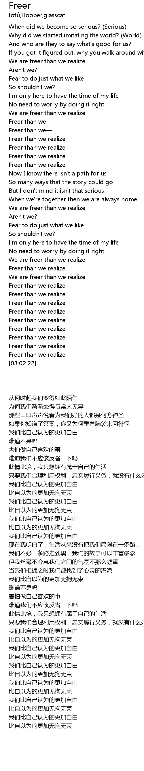 | [02:58.55] | Freer than we realize |