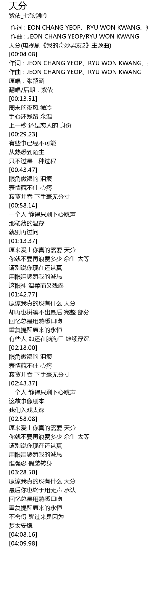 | [00:00.68] | 天分(电视剧《我的奇妙男友2》主题曲) |