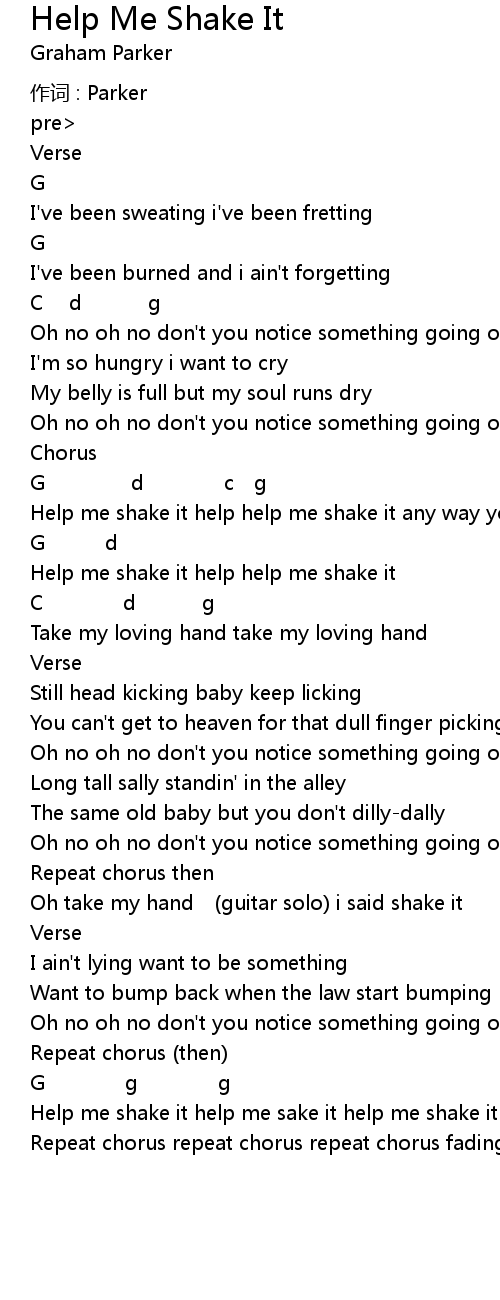 | Oh take my hand (guitar solo) i said shake it | |