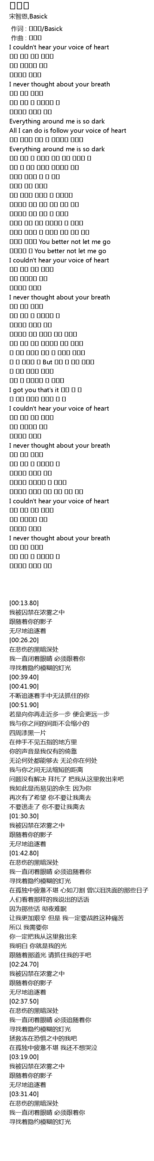| [00:13.80] | I couldn' t hear your voice of heart |
