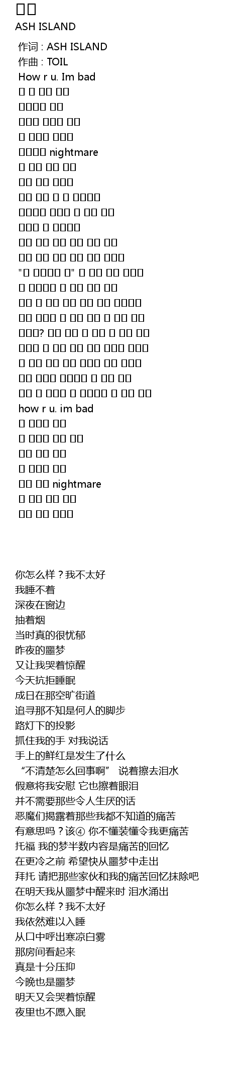 你怎么样?我不太好 |