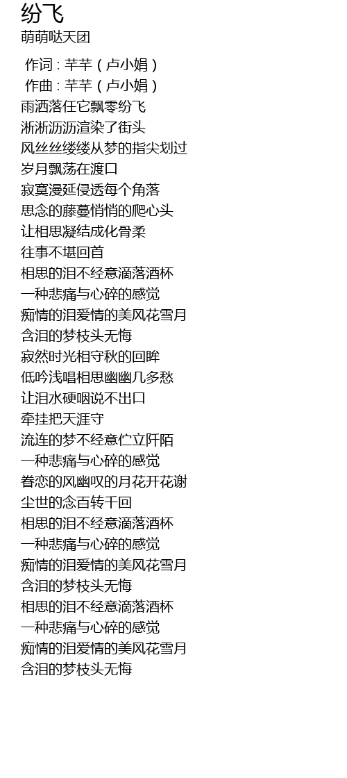 | [00:00.000] | 作词 : 芊芊(卢小娟) |