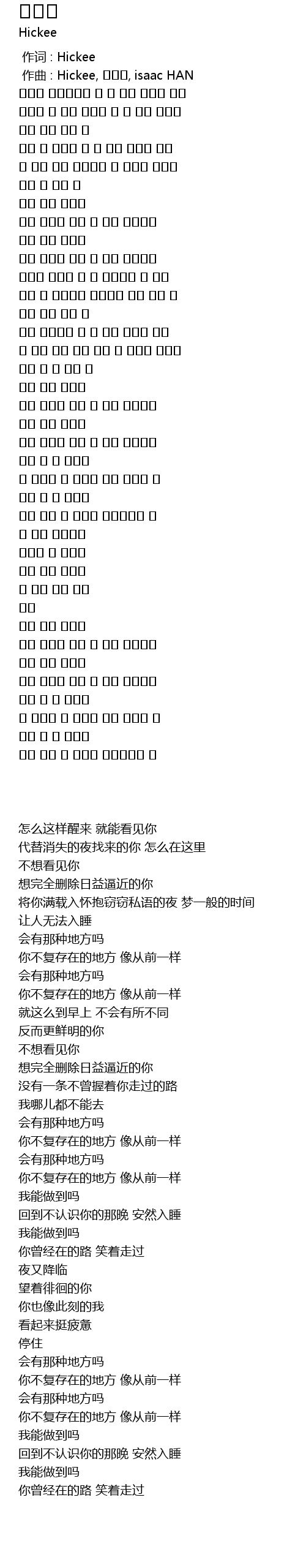 | [00:01.000] | zuo qu : Hickee, , isaac HAN |